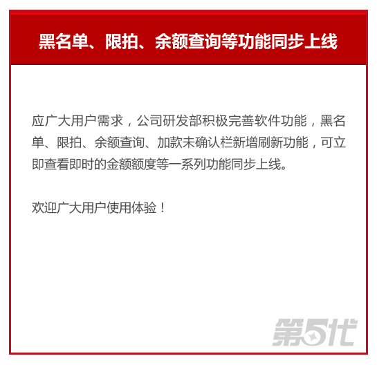 黑名单、限拍、余额查询等功能同步上线,欢迎体验